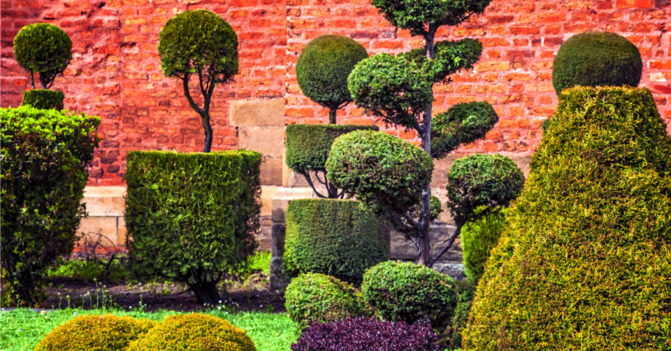 V této zahradě je zdrojem napětí kombinace kulovitých a hranatých objektů. Tvarovací řez dřevin si sice žádá čas i píli, námaha se však určitě vyplatí, protože dokonale zastřižené tvary vyniknou, jak mají.