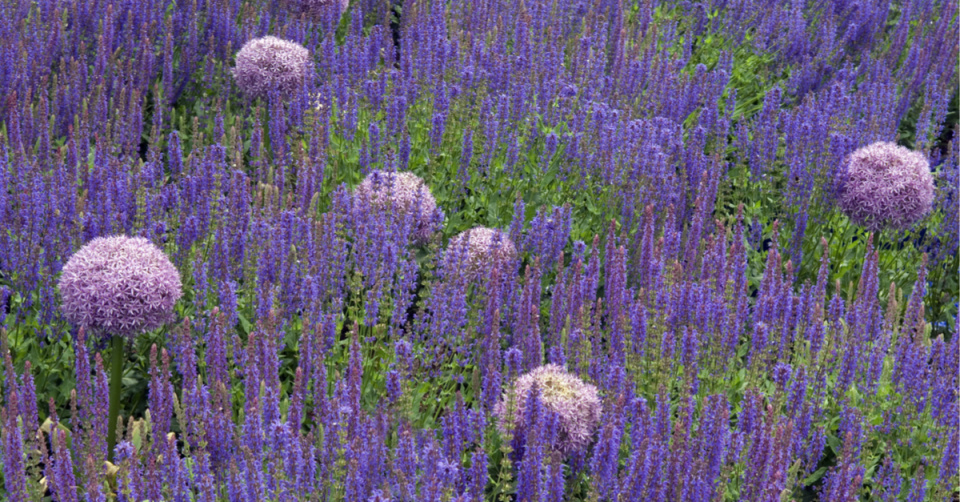 Kulovité versus podlouhlé, výrazné versus jemné, modré versus fialové: s touto kombinací šalvějí a okrasného česneku zabijete hned několik much jednou ranou – skvělý nápad pro květinovou zahradu plnou kontrastů.