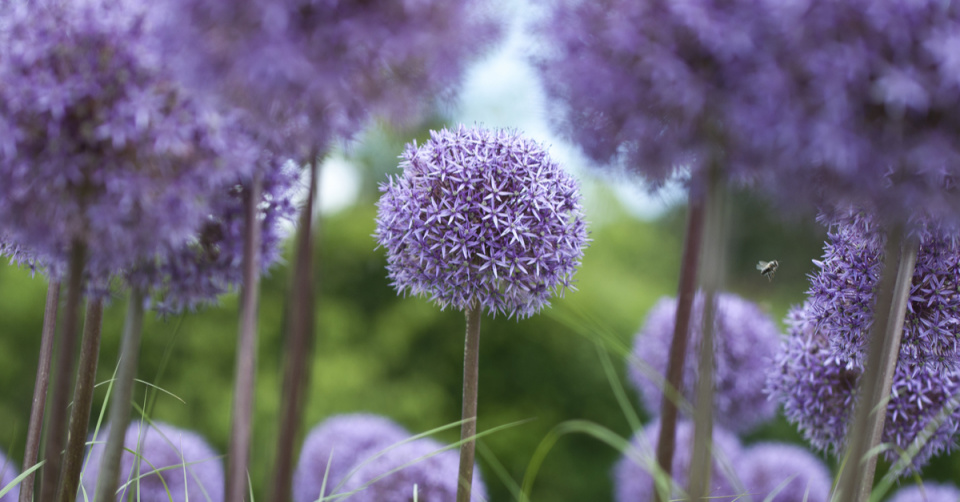 Květenství okrasného česneku je atraktivní samo o sobě. Zkuste ale zkombinovat dva druhy s různě velkým květenstvím, např. česnek obrovský (Allium giganteum) ‘Globemaster‘ a česnek nachový (A. atropurpureum). Výsledkem bude kompozice, kterou nikdo nepřehlédne.