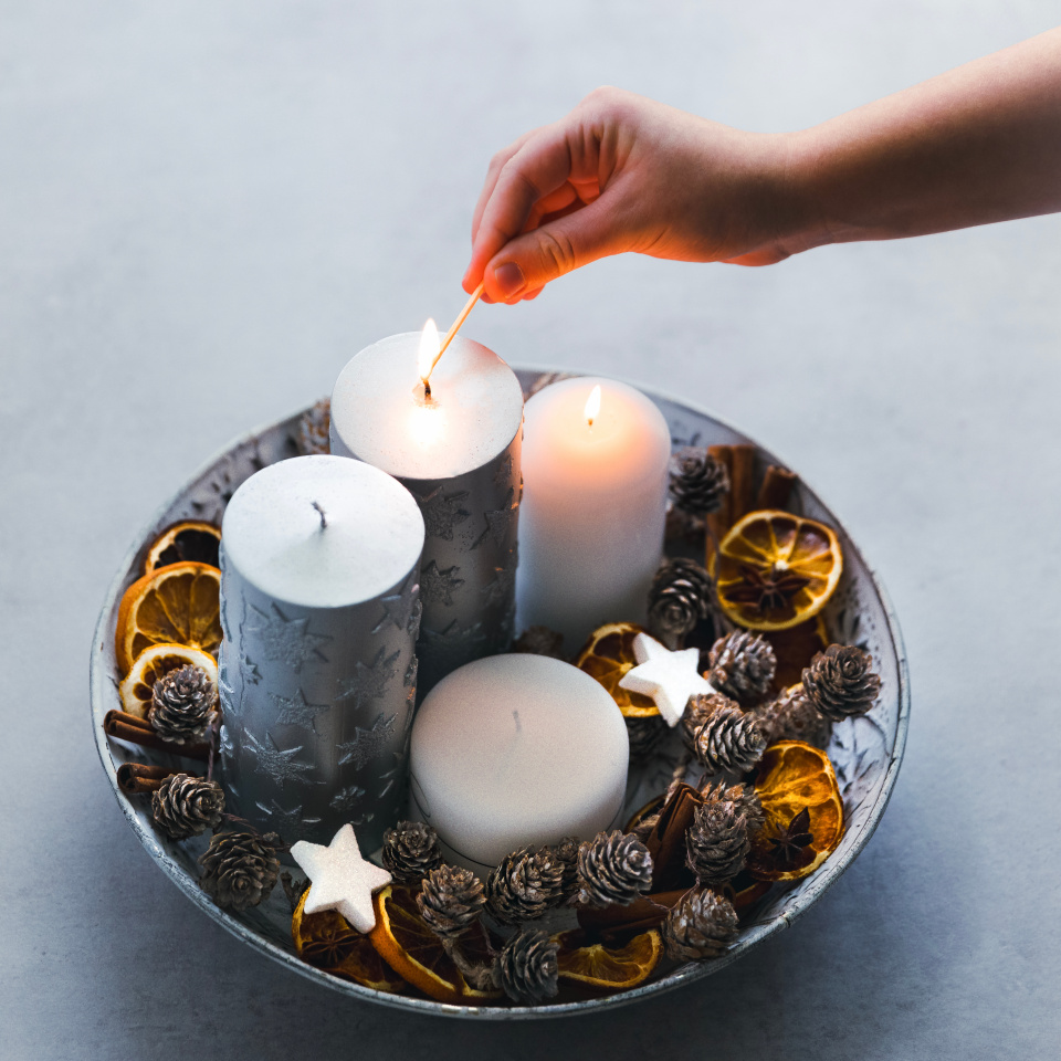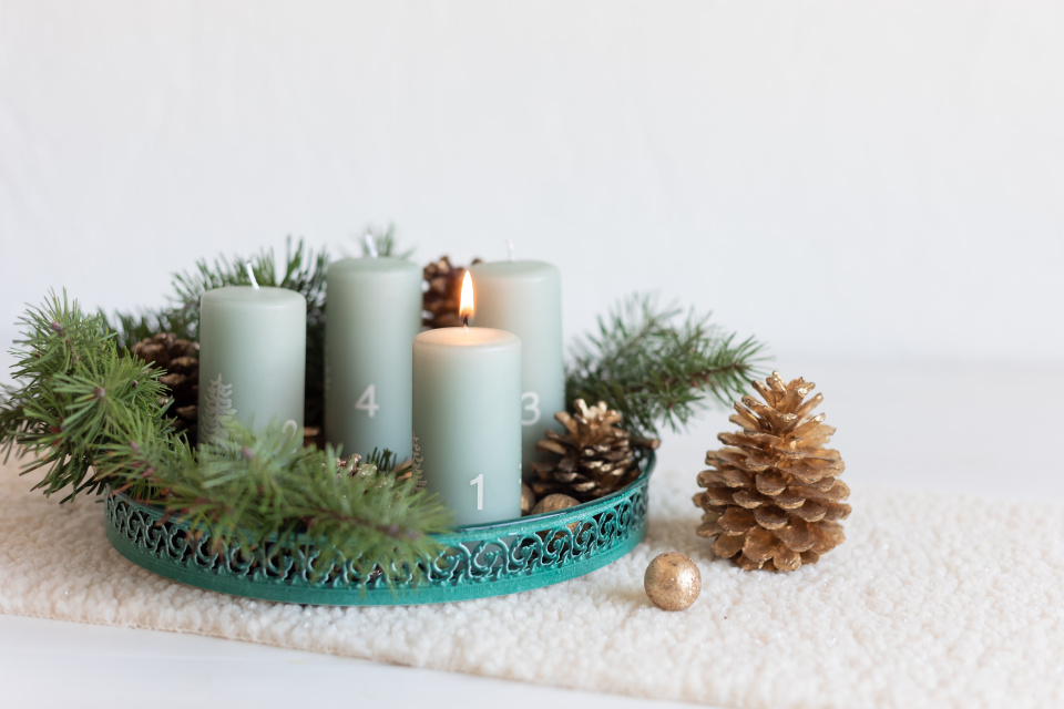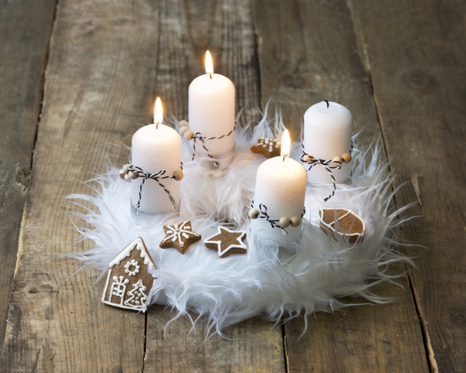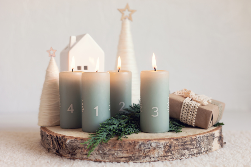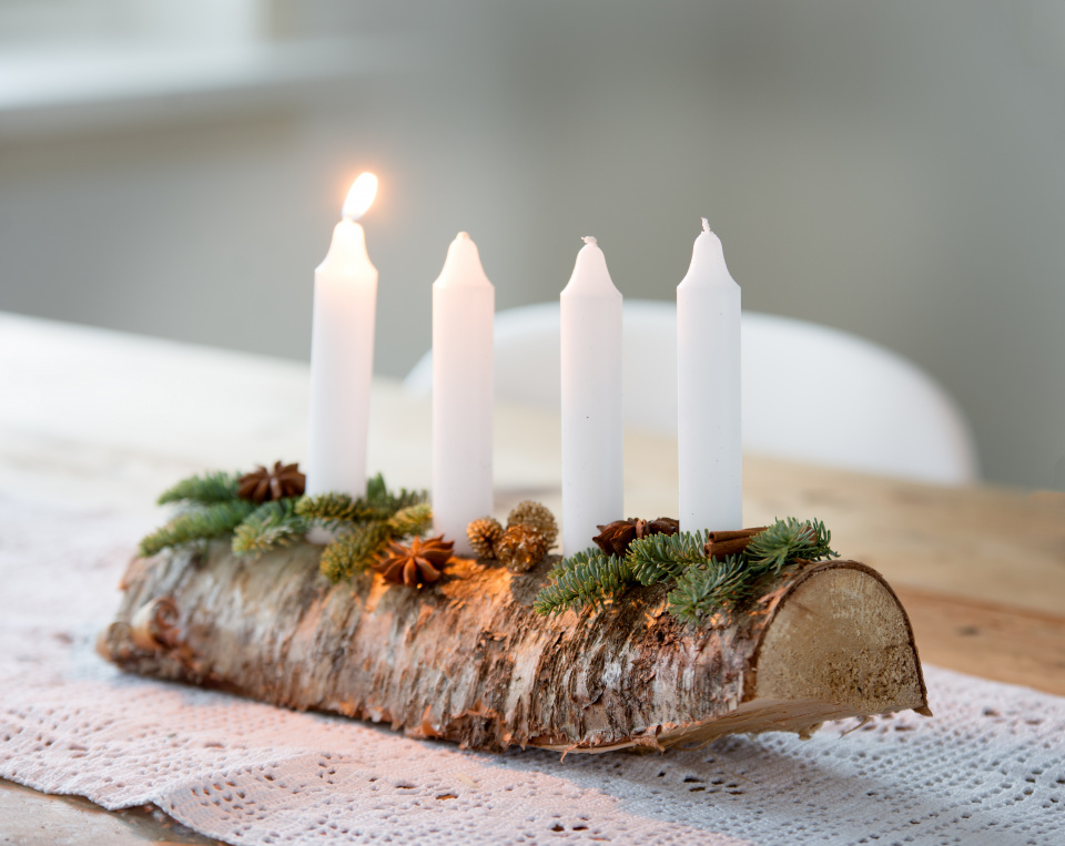 Pokud jste zastánci minimalismu, můžete použít adventní svíce na podložku ze dřeva.