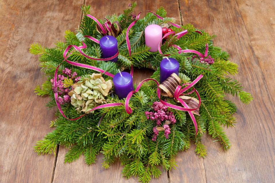 Podle církevních tradic by měl adventní věnec nést 3 svíce fialové a jednu růžovou.