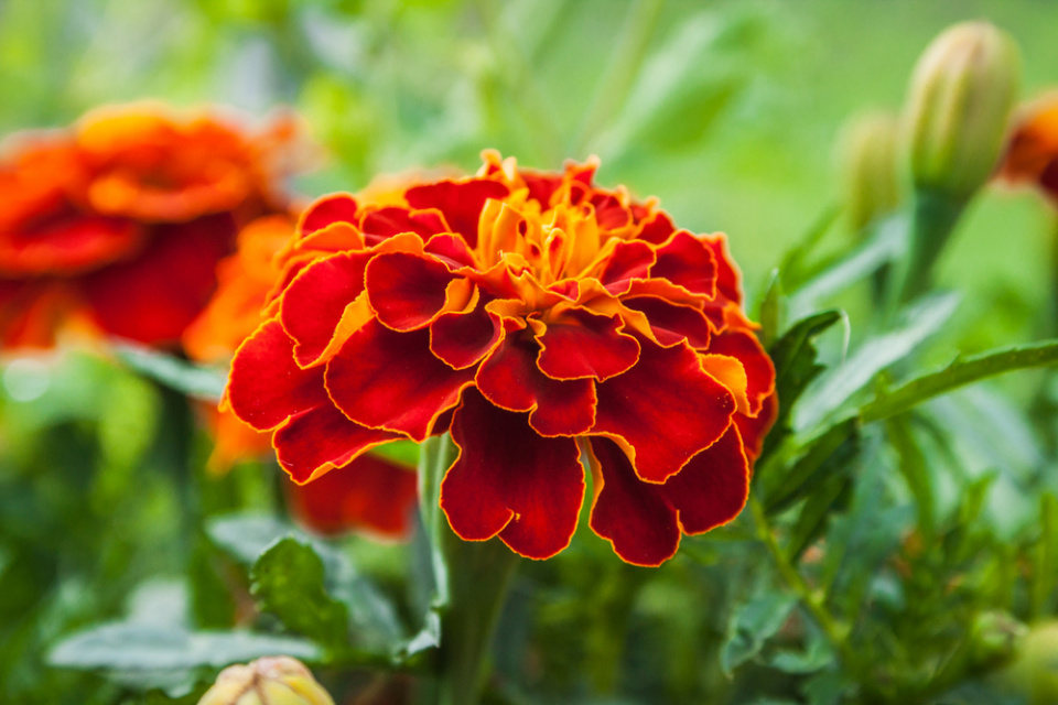 - Afrikán neboli aksamitník rozkladitý: Snadno se pěstuje, dlouho kvete, dokáže chránit růže i mrkev
