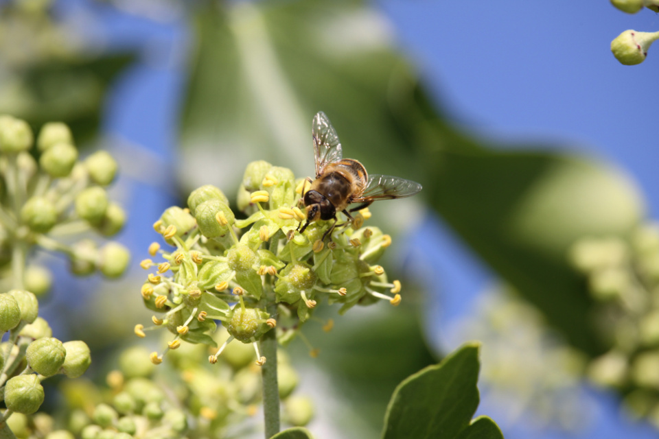 Právě pozdní květy břečťanu, které se objevují na starších rostlinách od září až do poloviny listopadu, jsou nesmírně cenné pro včely a další opylovače