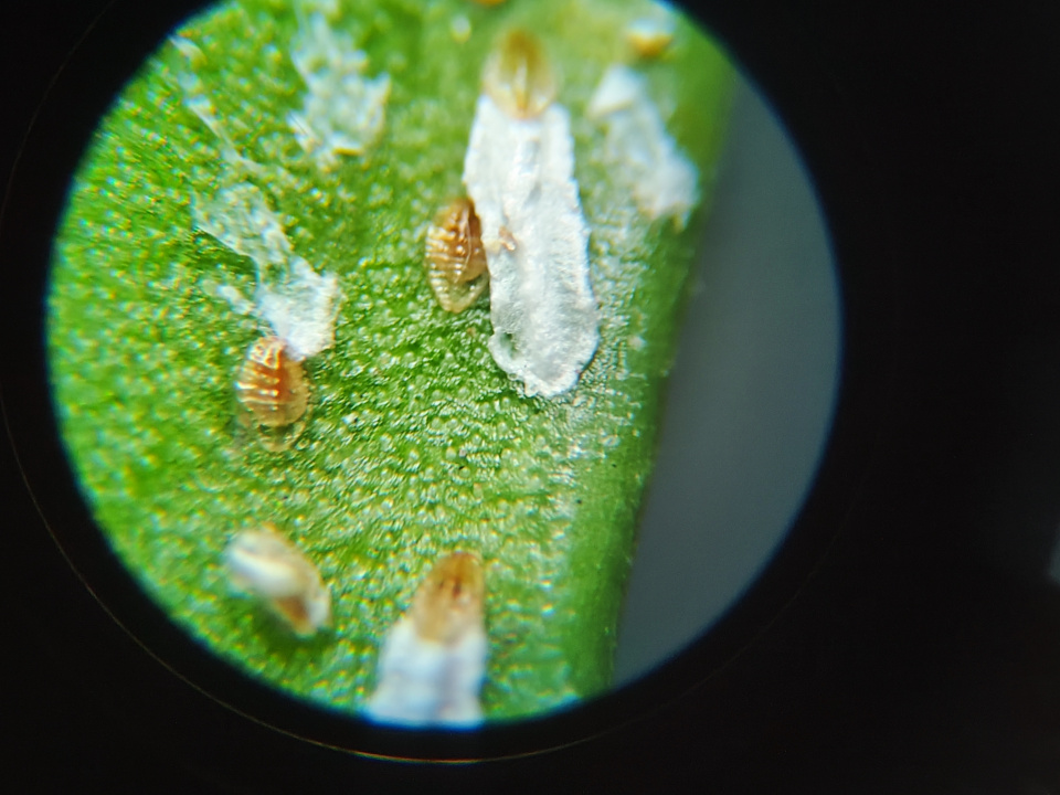 štítenka brslenová je savý škůdce a její tělo je kryto štítkem, podobně jako u červců