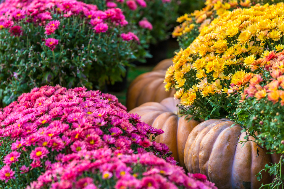 Chryzantémy s dýněmi k sobě zkrátka patří