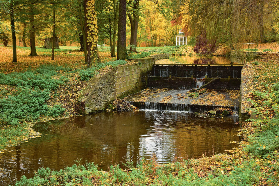 Parkem protéká potok Leska.