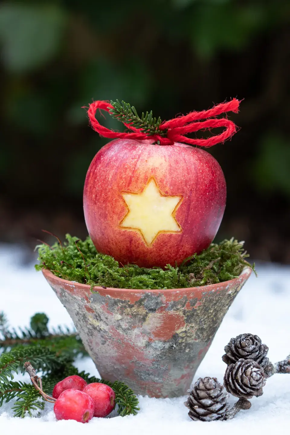 Terakotové květináče se vracejí do módy, zvlášť ty s patinou. Vyplňte je půdou nebo pískem kvůli stabilitě a povrch substrátu pokryjte mechem. Do něj můžete umístit svíčku nebo pěkné červené jablko.