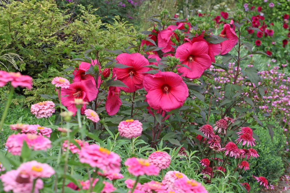 Ibišek bahenní můžete pěstovat jako solitérní rostlinu, ale i ve společnosti letniček či trvalek. Důležité je, aby se rostliny vzájemně nezastiňovaly