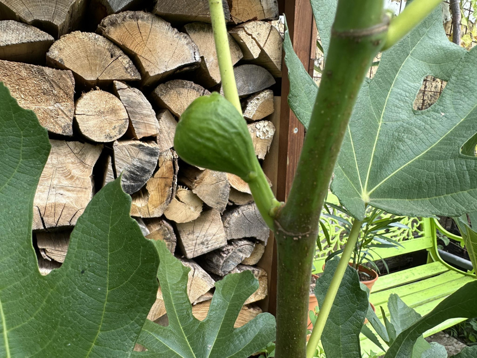 První zralý fík letošní sezóny. Tato odrůda má zelené, lehce nažloutlé plody. Na omak je zralý plod měkký a na povrchu se mu začínají tvořit prasklinky