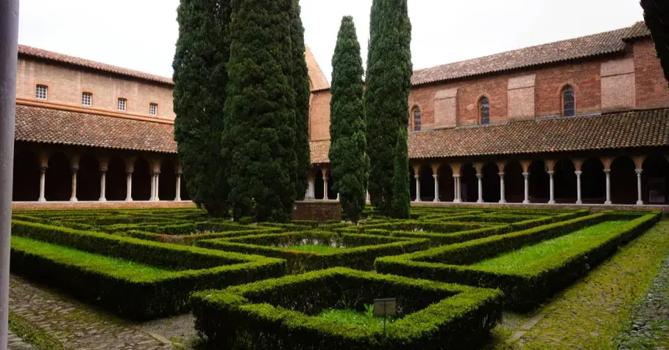 Čtvercový rajský dvůr s křížovou chodbou jakobínského kláštera ve francouzském Toulouse