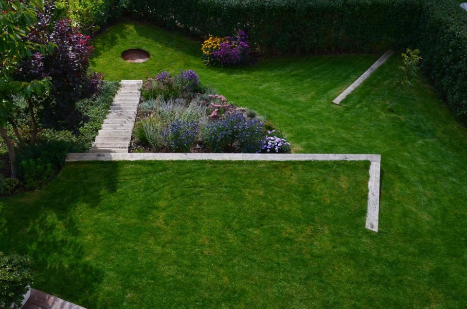 Co se týče problému se stávající zelení, nebylo nutné zahradu až tak fatálně překopávat. „Množství původních keřů a keříků ovládajících zahradu jsme zvládli vyčistit pomocí sestěhování, ale také odstěhováním nevhodných druhů," říká zahradní architekt.