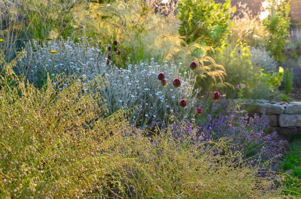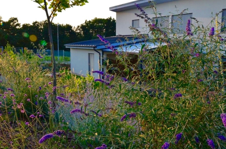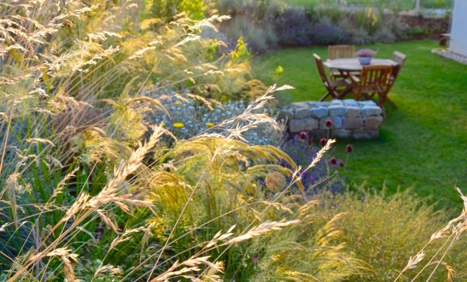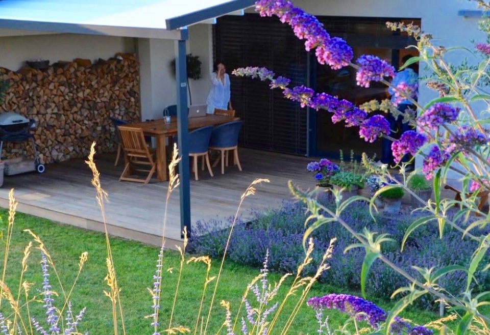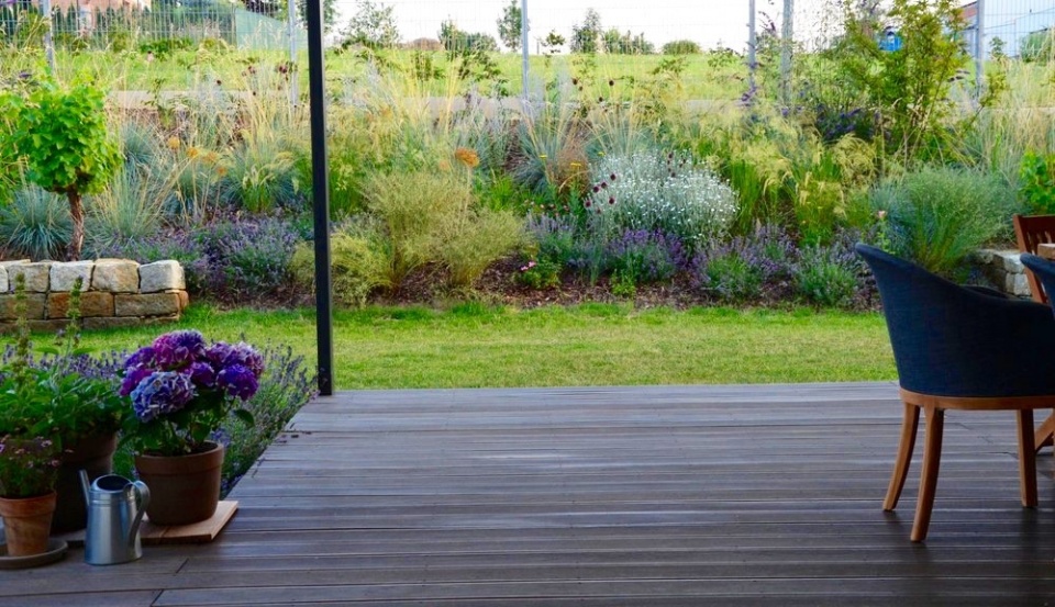 Zahrada obsahuje všechno, co na jižních zemích všichni tolik milujeme. „S radostí jsme se nechali unést na jižní vlně a zahradu zaplnili modrou v mnoha odstínech: kvetou zde omamně vonné levandule, perovskie, letní česneky, modré lny, lupiny a komule,” ukazuje zahradní architekt.