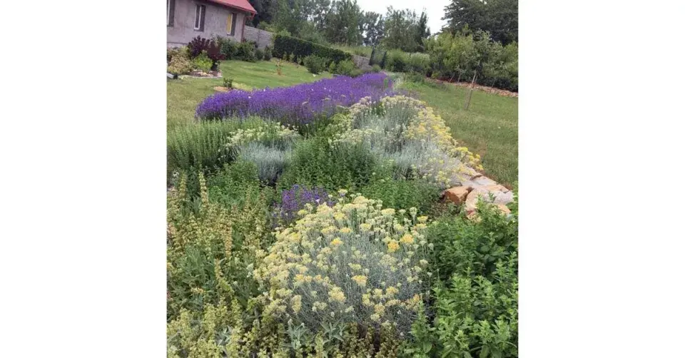 „Tahle zahrada vznikala na staré obecní skládce a během posledních tří let jsme se ji pokusili vlastními silami zkultivovat. Na téhle fotce jsou bylinky...