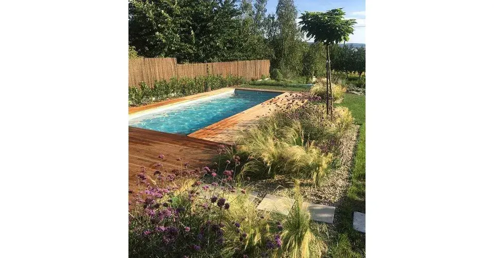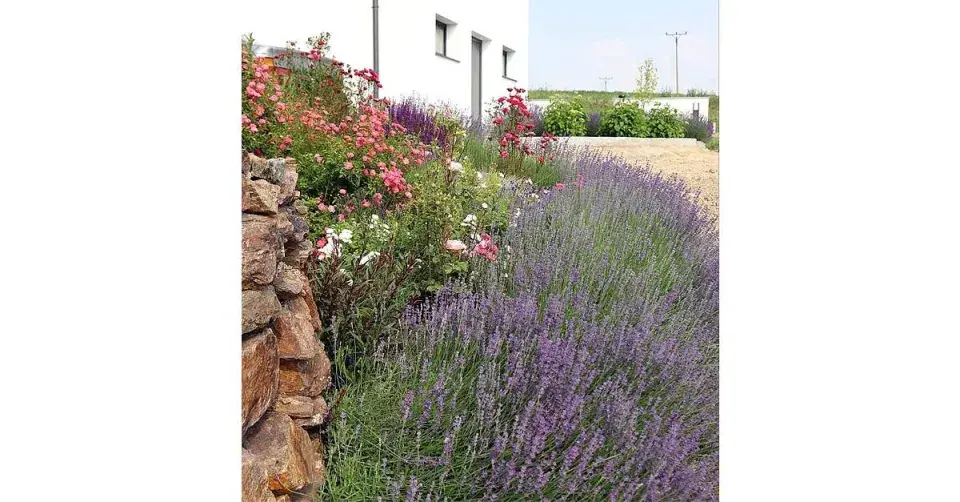 ... a tady záhony, které jsem sázela loni v květnu kolem bazénu rodičů," píše paní Simona.
