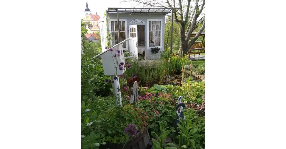 „Na zahradě mám spoustu oblíbených koutů či zákoutí, ale hodně oblíbené je jezírko plné leknínů a altán, kde si člověk může dát šlofíka nebo jen sedět a poslouchat zurčící fontánu v jezírku. Také miluji pohled na náš Stařečský kostel," píše paní Zuzana.