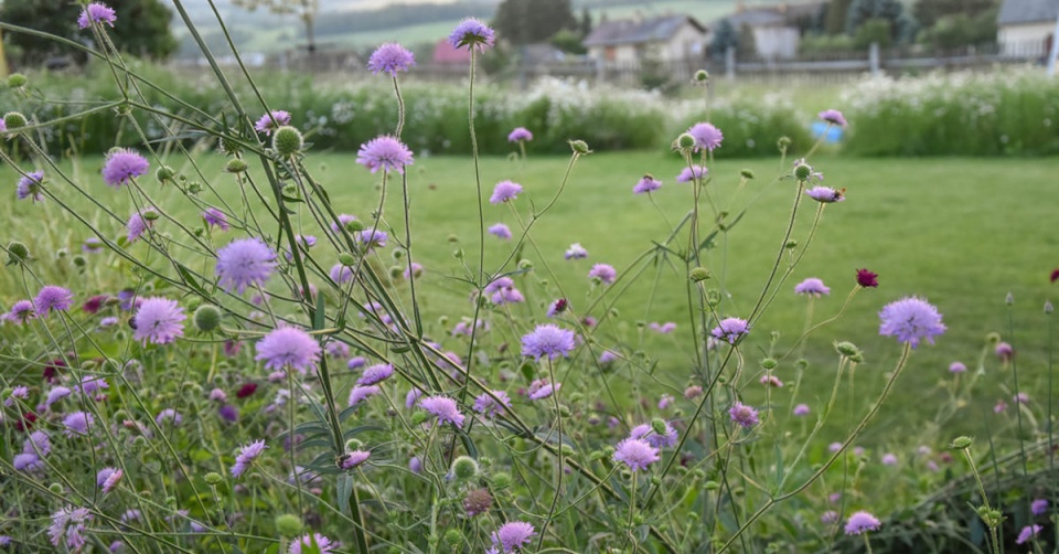 Tento zelený palouček je vůkol obklopen lučním kvítím.