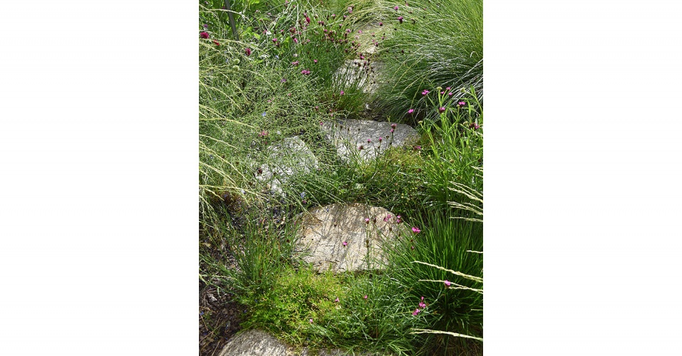 „Jeho výběru jsme věnovali velkou pozornost. Využit byl, jak jinak, ten místní,” ukazuje zahradní architekt.