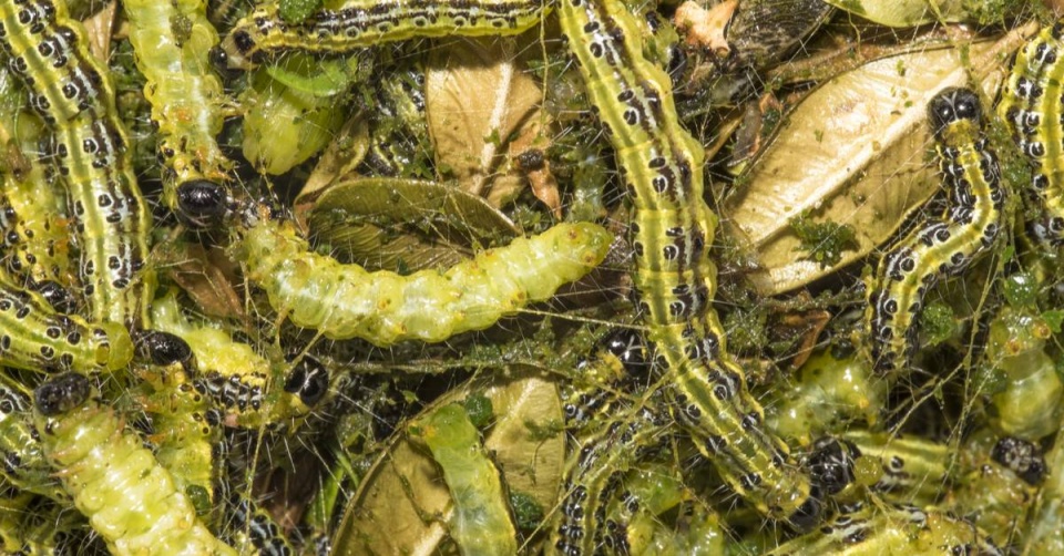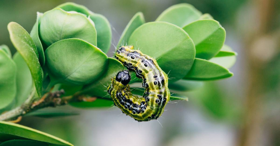 Housenky zavíječe zimostrázového se živí listy a letorosty buxusu.