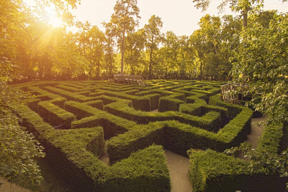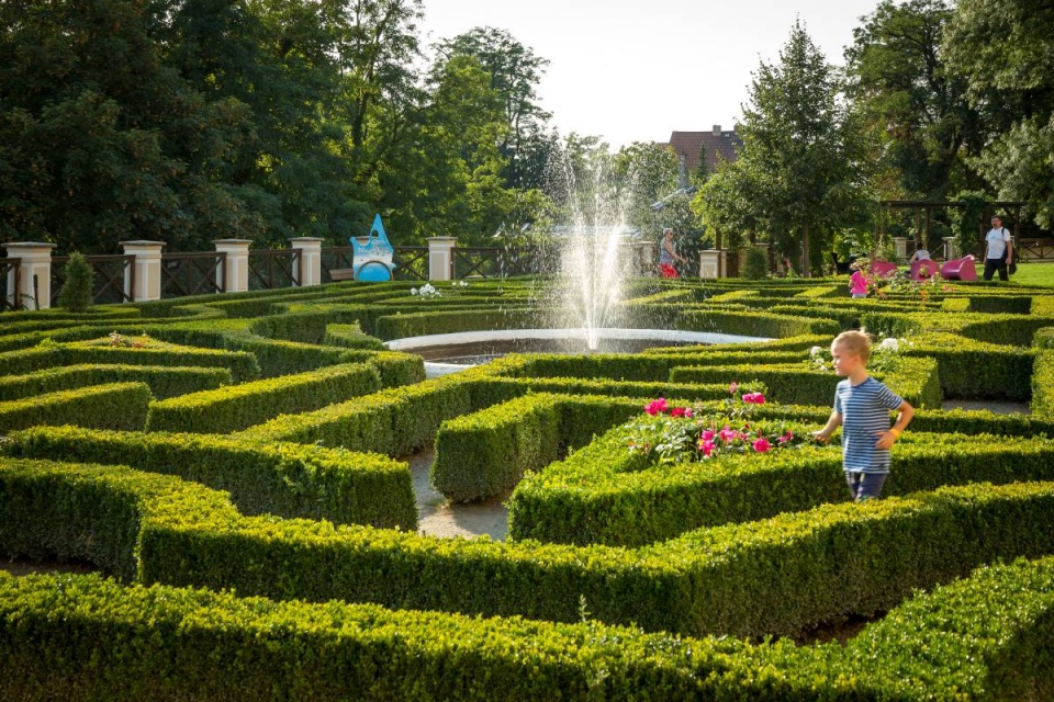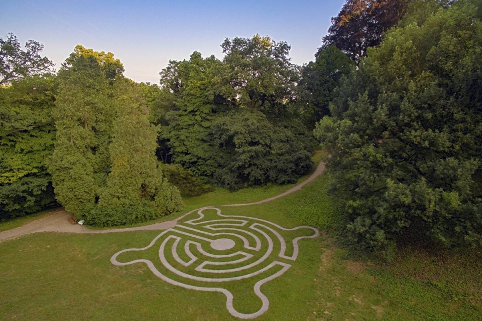 Dlážděné bludiště uprostřed zámeckého parku patří k těm menším.