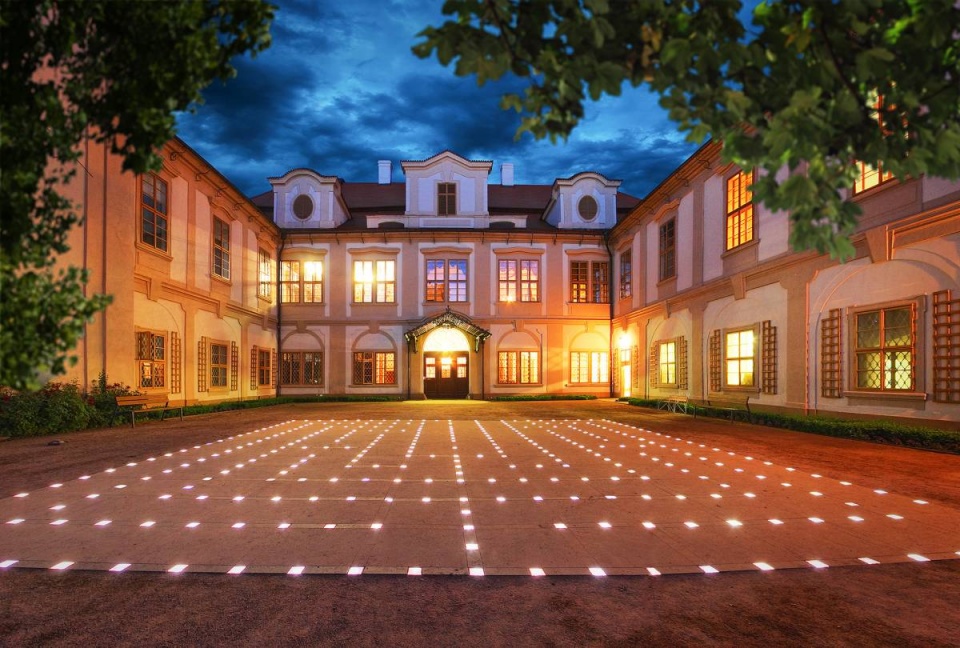 Světelný labyrint vyplňuje zámecké nádvoří a je vytvořen z pískovce a světelných diod. Přes den je nenápadný, po setmění vás ale okouzlí.