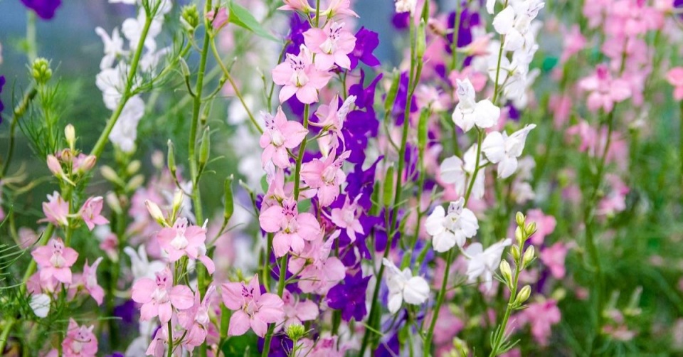 Ostrožka zahradní (Consolida ajacis) může být 30 cm, ale i 100 cm vysoká. Je řídce větvená, má čárkovité lístky a od června do května kvete modrými, bílými, růžovými (nebo červenými) květy. Půdu si nárokuje propustnou a živnou, nejlépe na osluněném místě. Vysoké kultivary je třeba vyvazovat nebo chránit před větrem.