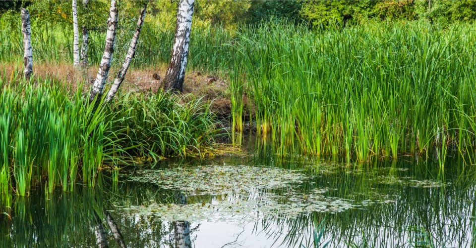 Zblochan vodní (Glyceria maxima) je silně odnožující travina vhodná na trvale vlhká místa nebo přímo do mělké stojaté vody. Kvete koncem července a v srpnu a na zimu zatahuje.