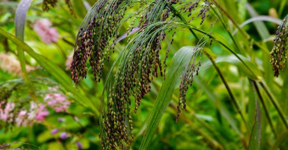 Proso prutnaté (Panicum virgatum) je statná stébelnatá travina s listy dlouhými do 80 cm a stébly vysokými až 140 cm. Květní laty rozkvétají od konce srpna do konce září drobnými růžovými až purpurovými klásky. Nejlépe roste ve vlhké půdě na plném slunci.