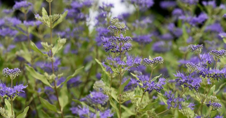 Milovníky modrých květů nadchne ořechoplodec (Caryopteris). Polokeř, od kterého existují různé kultivary, je však poněkud citlivý na mráz, a proto vyžaduje zimní ochranu. Je také třeba vyvarovat se nadměrné půdní vlhkosti.