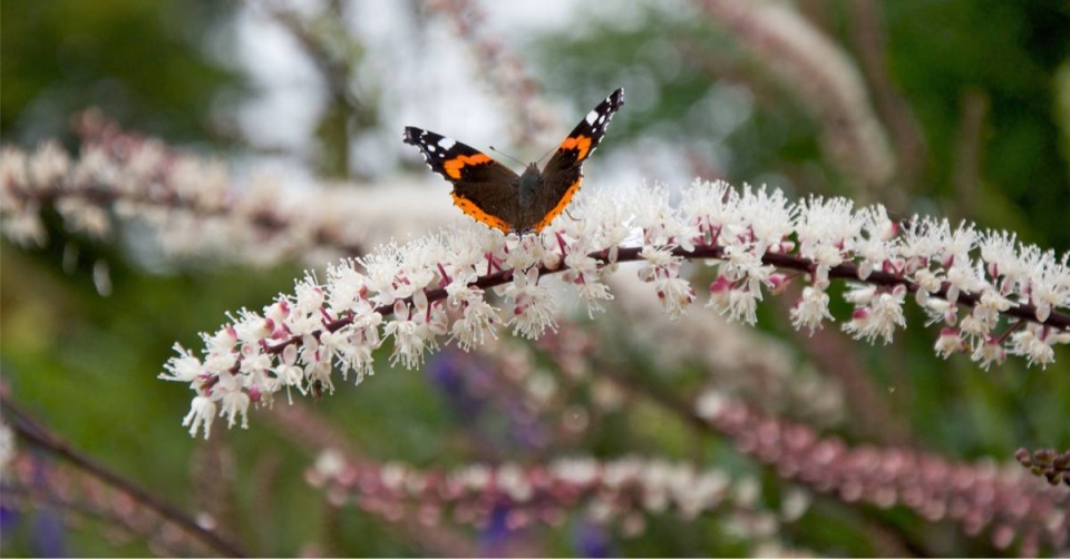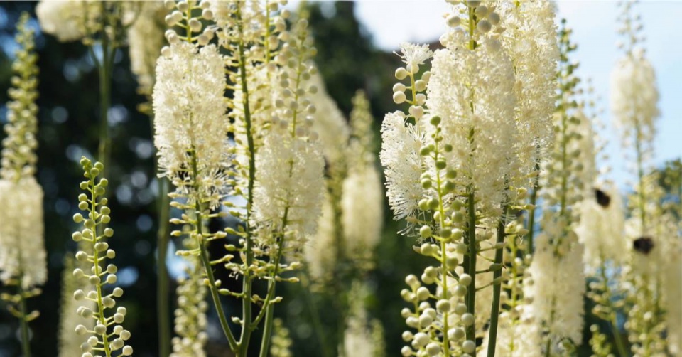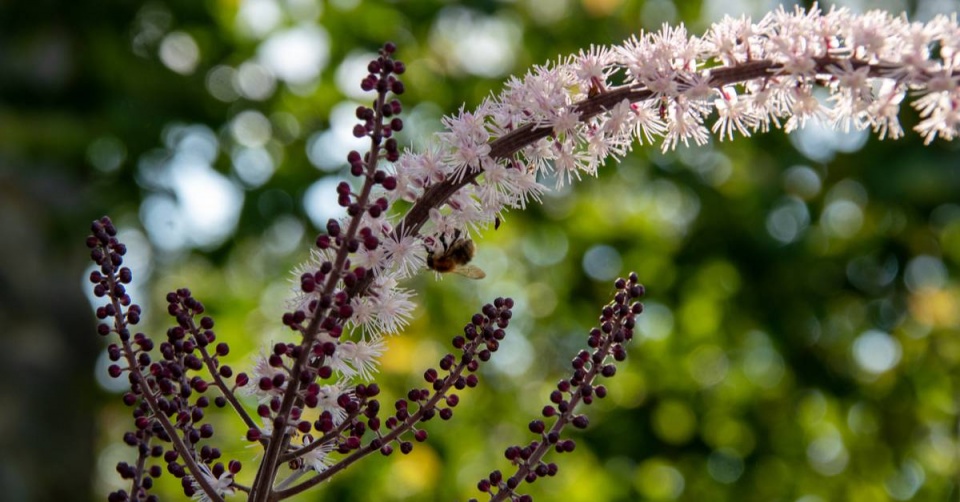 Květy ploštičníku hroznatého (Cimicifuga racemosa) přitahují včely, motýly a jiný hmyz.