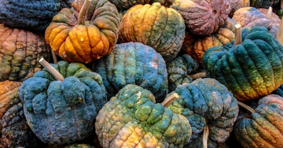Zralá muškátová dýně ’Futsu Black’ obdaří své pěstitele jemnou vůní připomínající vlašské ořechy. Váží asi 2 kg. Temně zelené plody s modravým nádechem a šafránově žlutou dužninou jsou pastvou i pro oko.