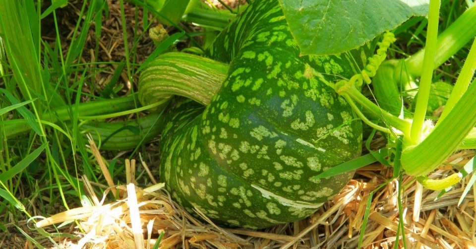 Vrstva slámy ochrání plody před mokrem a bez otlaků na ní dozrají i těžké váhy, jako je třeba štýrská olejová dýně.