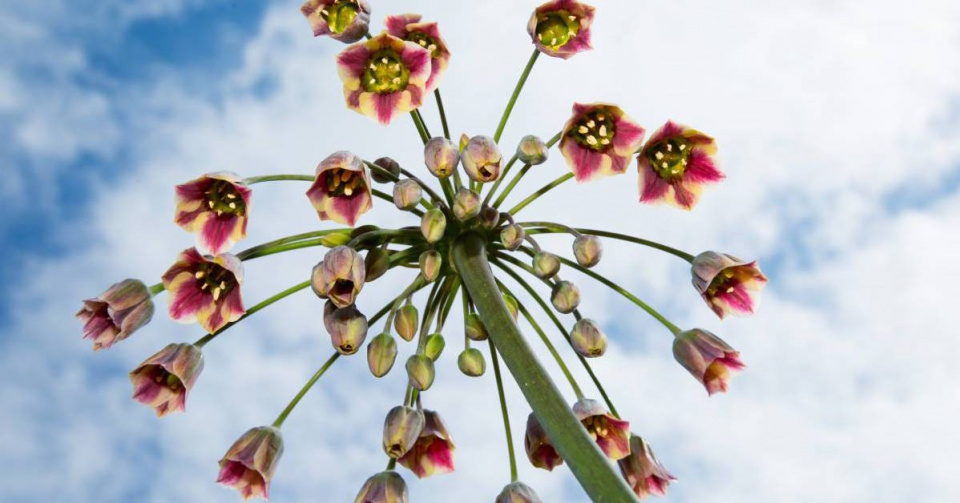 Rostlina Nectaroscordum tripedale je příbuzná česneku a své růžovobílé květy v kulovitých květenstvích otevírá začátkem léta. Tyto asi metr vysoké rostliny lze ve slunných záhonech dobře kombinovat s trvalkami.