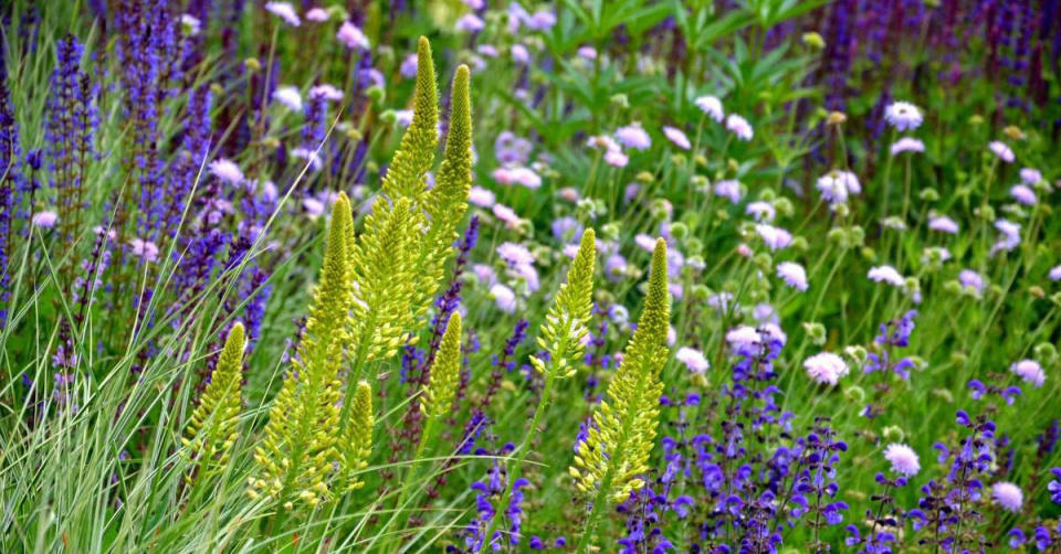 Liliochvostec úzkolistý (Eremurus stenophyllus) se svými žlutými „jehlami“ oživí trvalkové záhony až v létě.