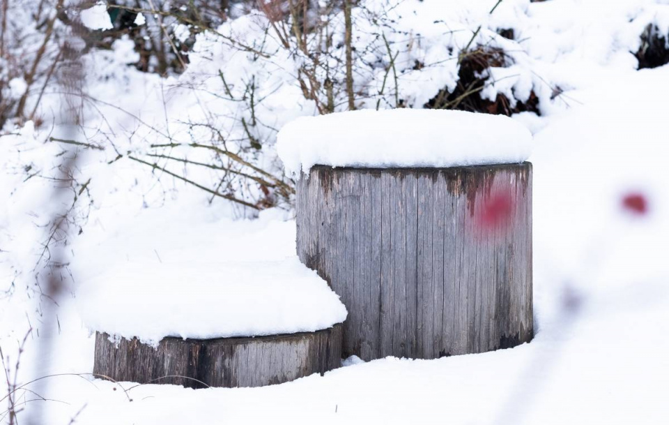 Zatímco v létě poslouží dřevěné špalky k sezení, v zimě jako dekorace.