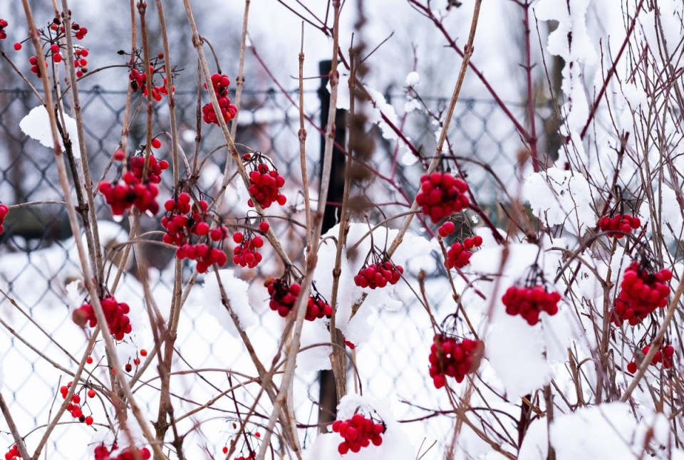 Barev je ale i v zimě dost. Mnohé z nich – třeba plody kaliny – si najdou i přezimující ptáci.