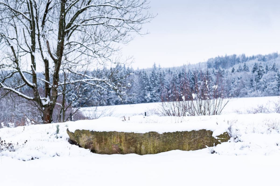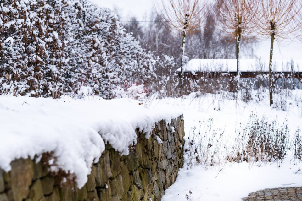Některé zahradní prvky můžete v zasněžené zahradě jen tušit, ...