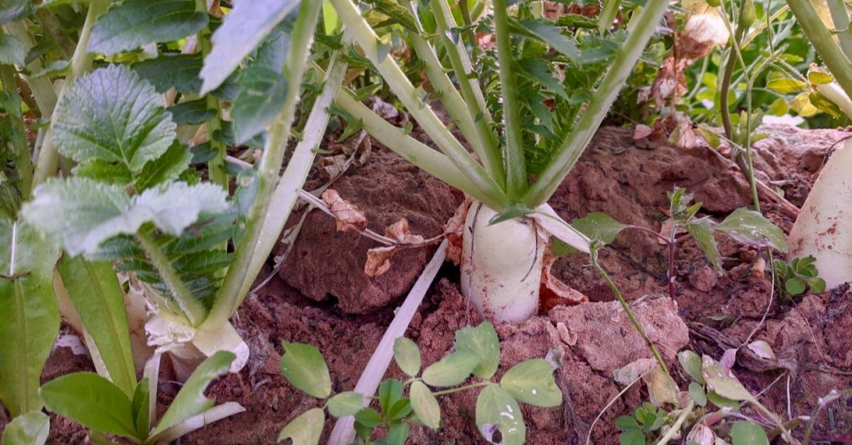 Semena velkých bílých ředkví, které se budou sklízet na počátku léta, vysévejte v odstupu alespoň 30 cm.