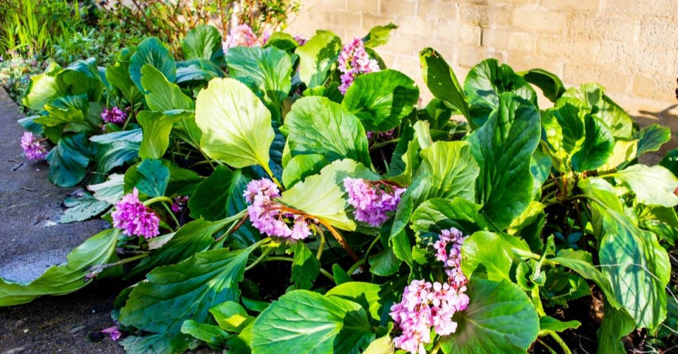 Vytrvalé bergenie zůstávají pohledné i mimo dobu kvetení. Jejich velké listy krášlí úzké stinné záhony během celého roku.