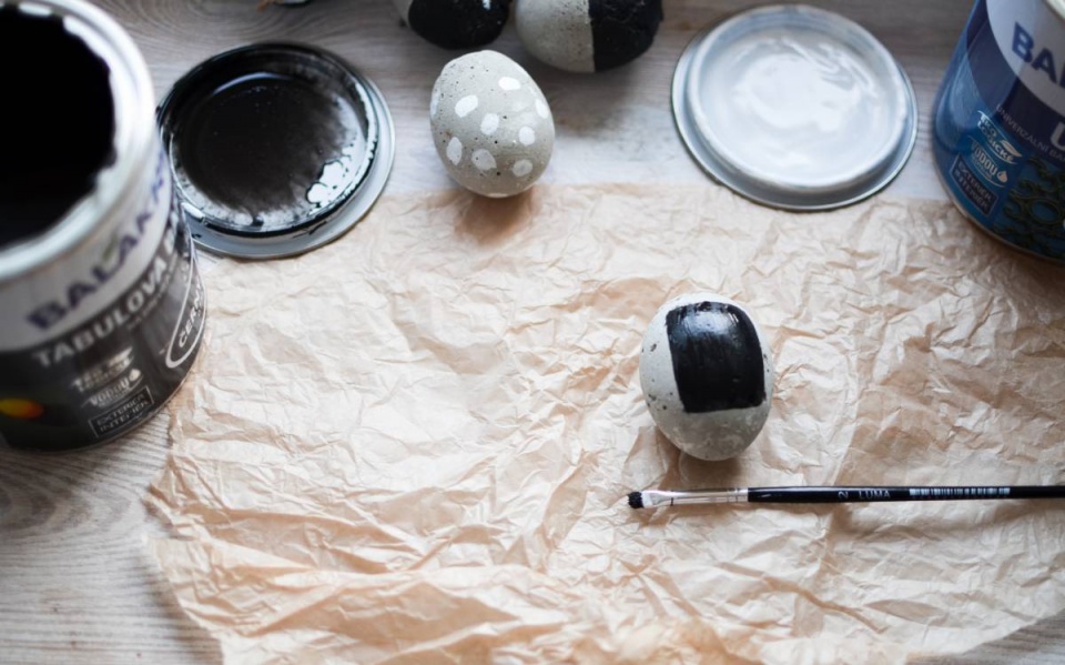 A nakonec to nejzábavnější – ozdobení vajec. Na fotkách byl použitý vodou ředitelný Balakryl UNI, který je bez zápachu, a je proto možné s ním pracovat i při běžném provozu domácnosti. Po ozdobení nechte barvu schnout čtyři hodiny.
