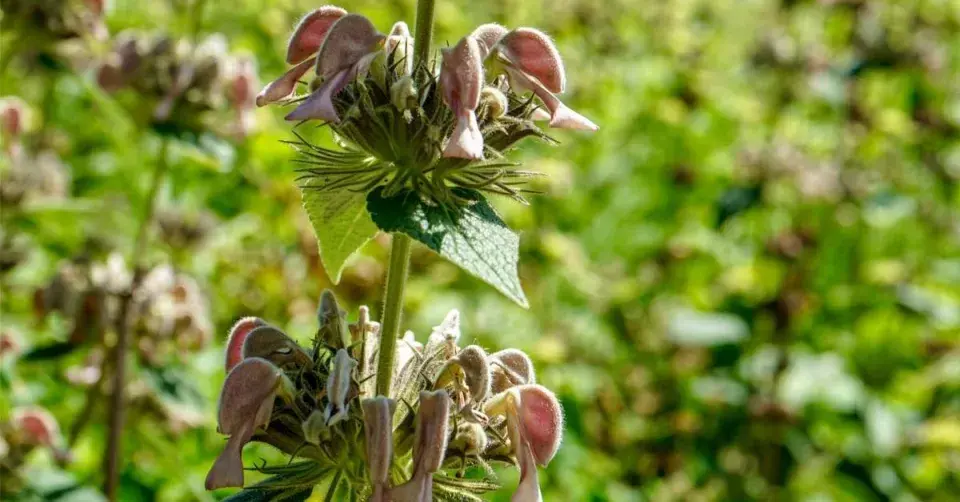Sápa samoská (Phlomis samia) pochází ze Středomoří a na slunném až polostinném místě může dorůstat až do výšky 150 cm. U nás není ale plně zimovzdorná. Barva jejích květů se mění od hnědavé až po růžovofialovou.