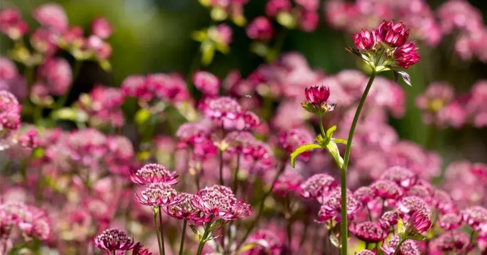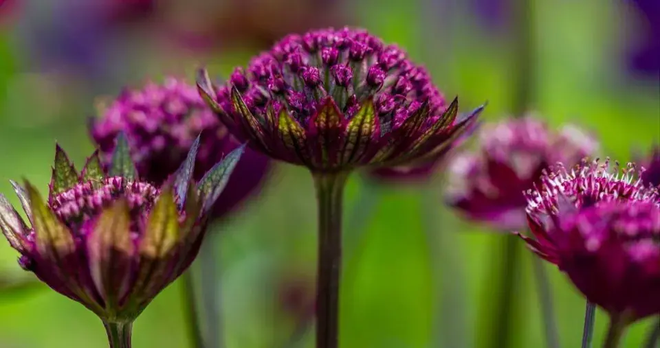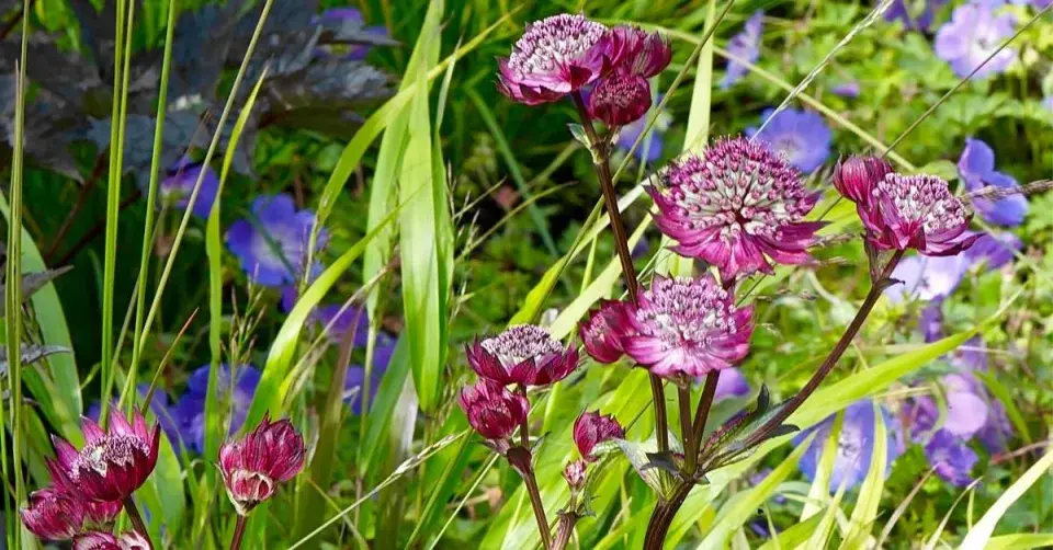 Květy jarmanky 'Hadspen Blood' se vybarví nejlépe na slunci, jejich listeny během odkvétání ale blednou.