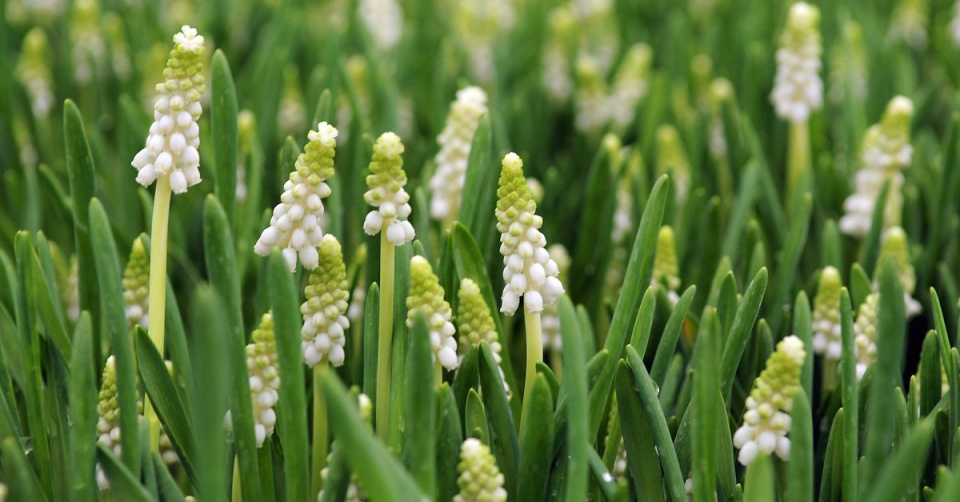 Modřence (Muscari) se vyskytují v modré, růžové i bílé variantě. Kvetou od března do května.