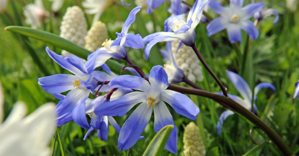 Květy ladoňky sibiřské (Scilla siberica) připomínají květy ladoničky.