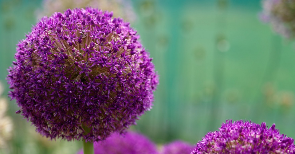 Jedno kulovité květenství okrasného česneku (Allium) je ve skutečnosti tvořeno mnoha drobnými kvítky.