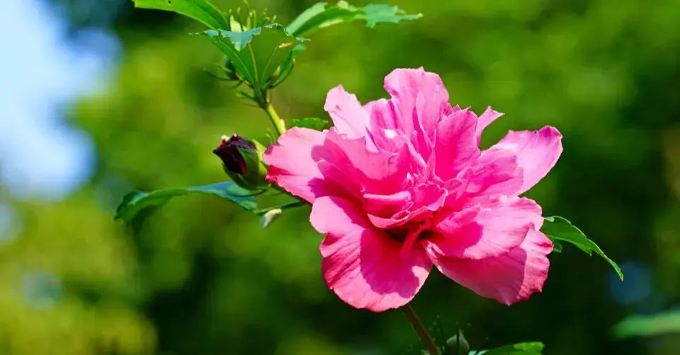 Ibišek syrský (Hibiscus syriacus) 'Marina' kvete od začátku července do konce léta.