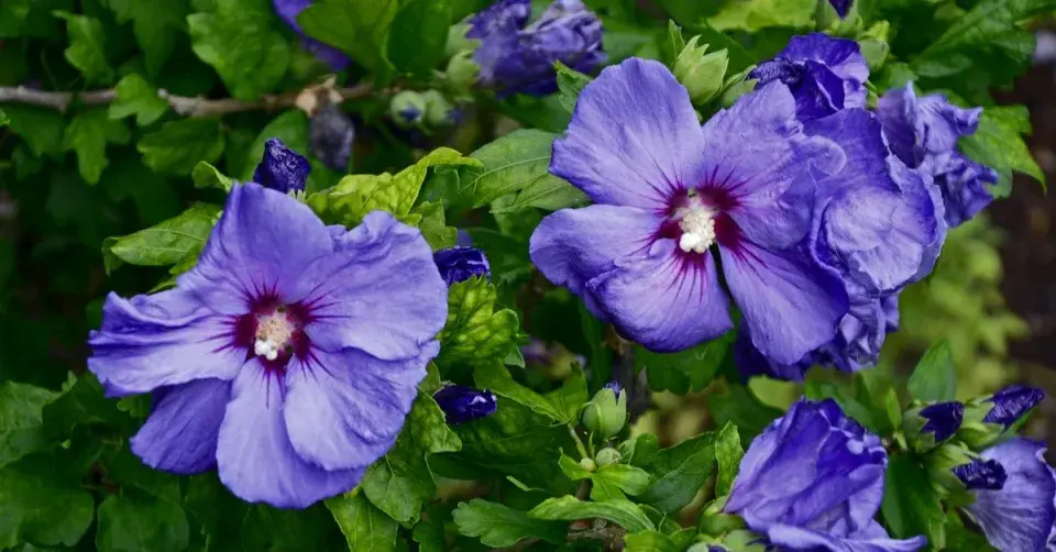 Ibišek syrský (Hibiscus syriacus) 'Oiseau Bleu' kvete od poloviny července do konce srpna až září.