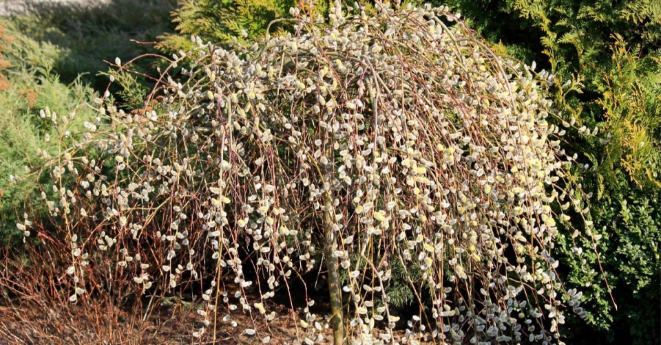 Vrba jíva (Salix caprea) ’Pendula’ vytváří převislý časně kvetoucí stromek, který je vhodný k podsázení.