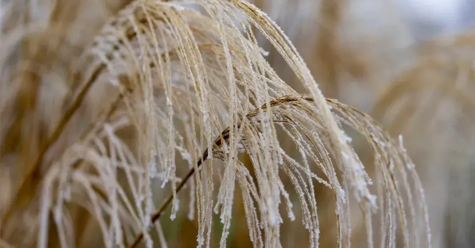 V zimě už naši pozornost nerozptylují pestré květy, takže si v zahradě všimneme i jemných detailů, jako například květenství ozdobnice (Miscanthus).