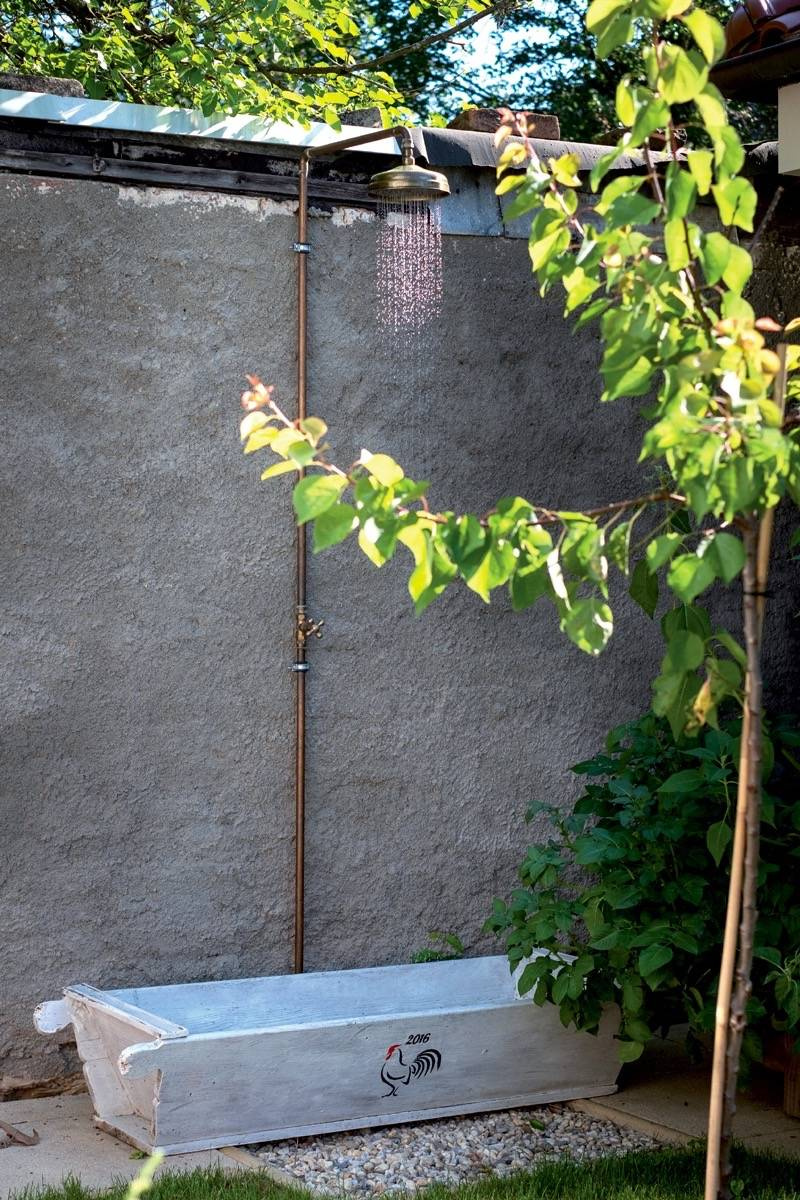 Další praktická součást užitkové zahrady: sprcha a starosvětské necky s „kohoutím designem“.