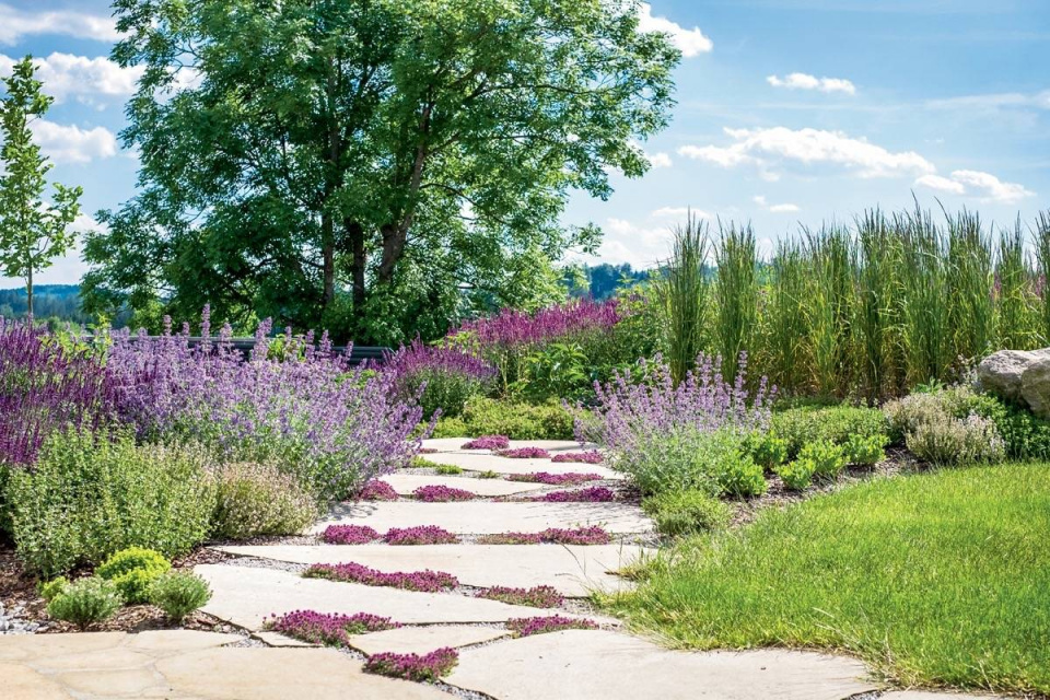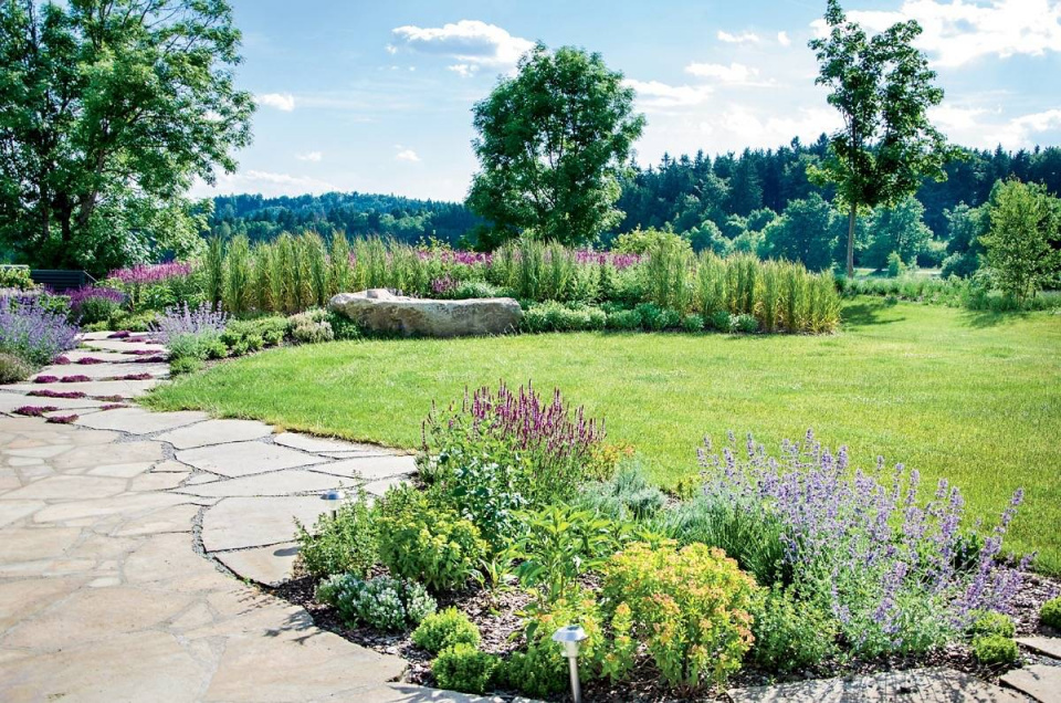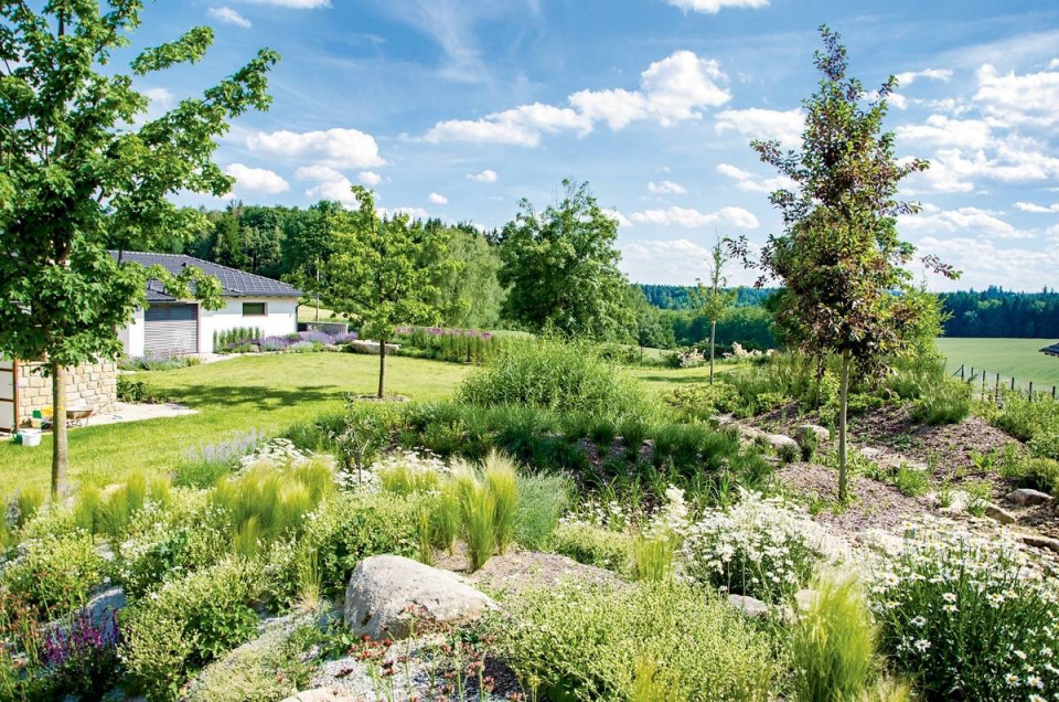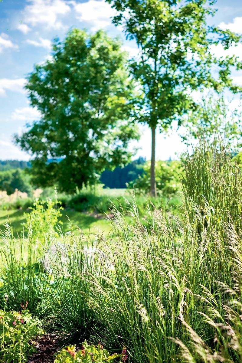 Zvlněné moře trav a květů přechází do mírných pahorků za plotem a větrem rozhoupaných lesů na obzoru… Tahle zahrada je ve své krajině doma.